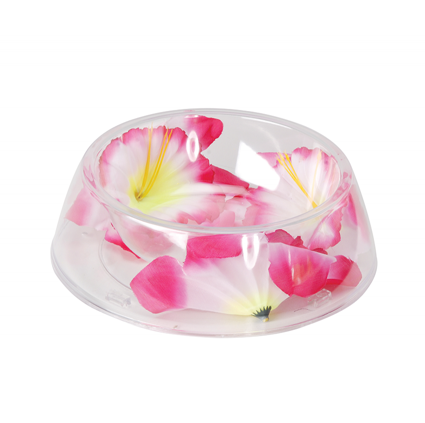 De jolies gamelles en plastique avec de fausses fleur à l'intérieur. Une touche de printemps qui durera toute l'année !