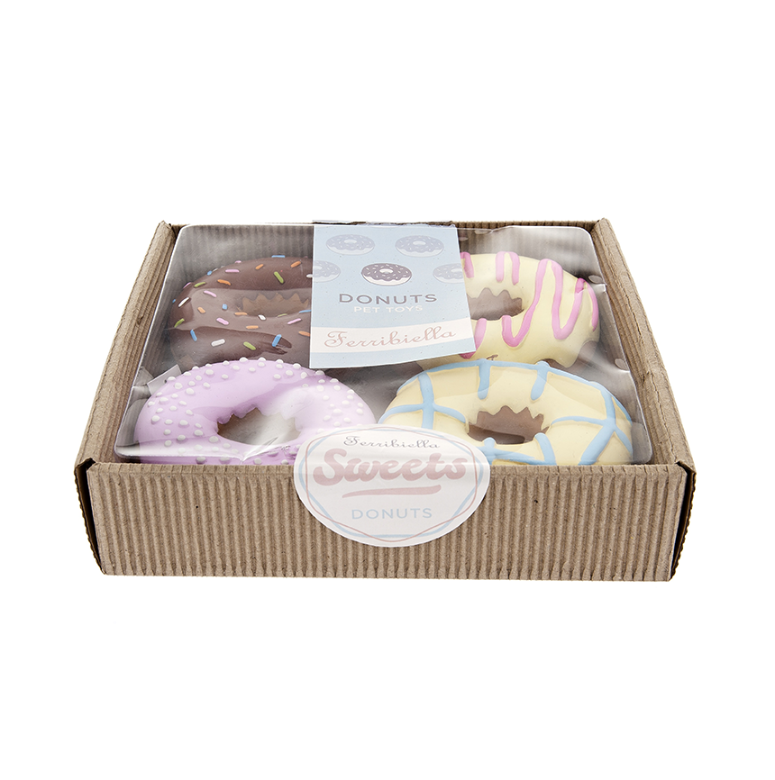 Coffret de 4 jouets Donuts en latex naturel.