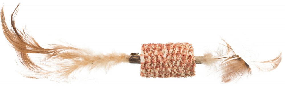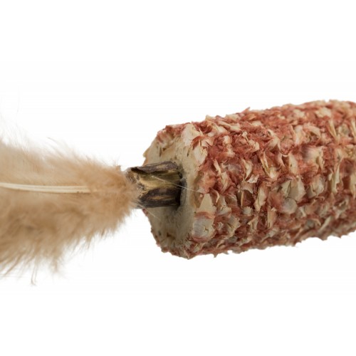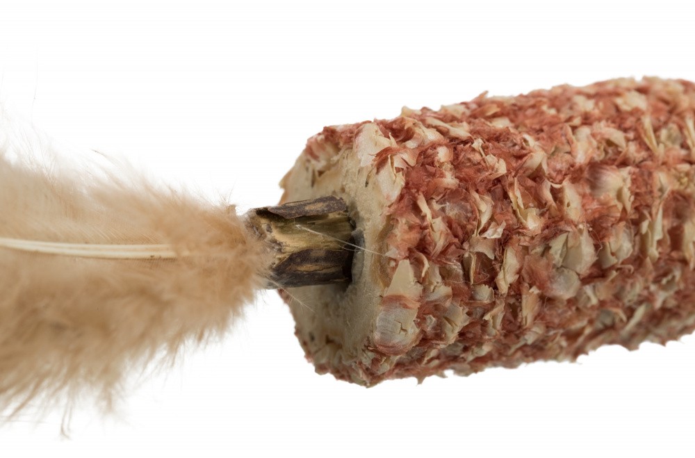 Stick en matatabi dans l'épi de maïs et plumes pour encore plus de fun !